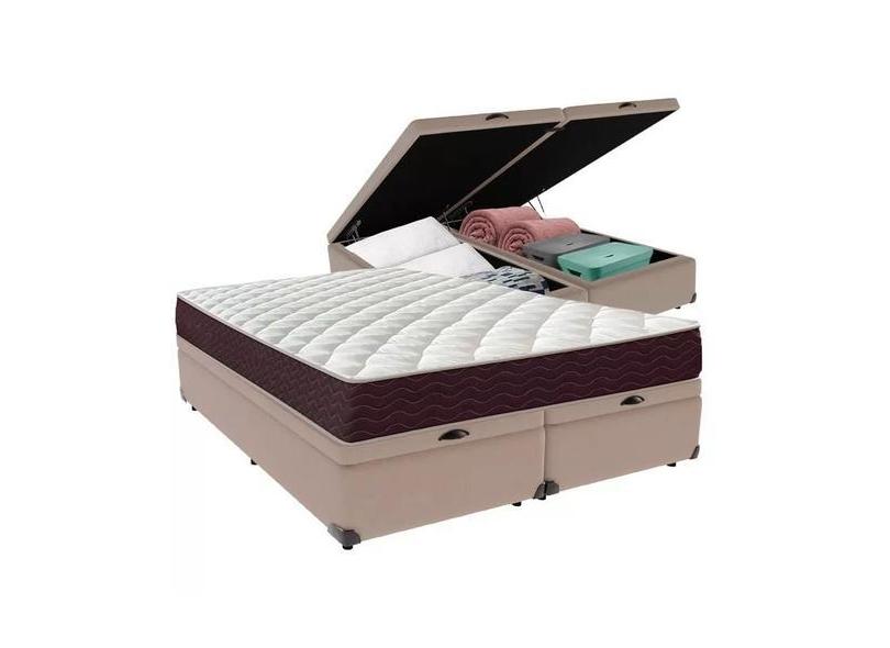 Cama Box Baú Queen Colchão Mola Ensacada Belos Sonhos + Box Suede 71X1