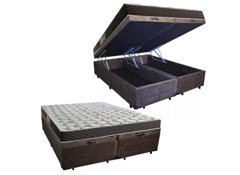 Cama Box Baú Queen Colchão Mola Ensacada nk Camas + Box Suede 65x158x198 Marrom