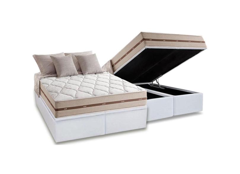 Cama Box Baú Queen: Colchão Molas Anjos MasterPocket Ensacadas Classic + Base crc Courano White(158x198)