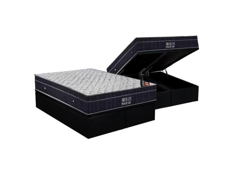 Cama Box Baú Queen: Colchão Molas Bonnel Ortobom Nanolastic Airtech Progressive+Base Black(158X198)