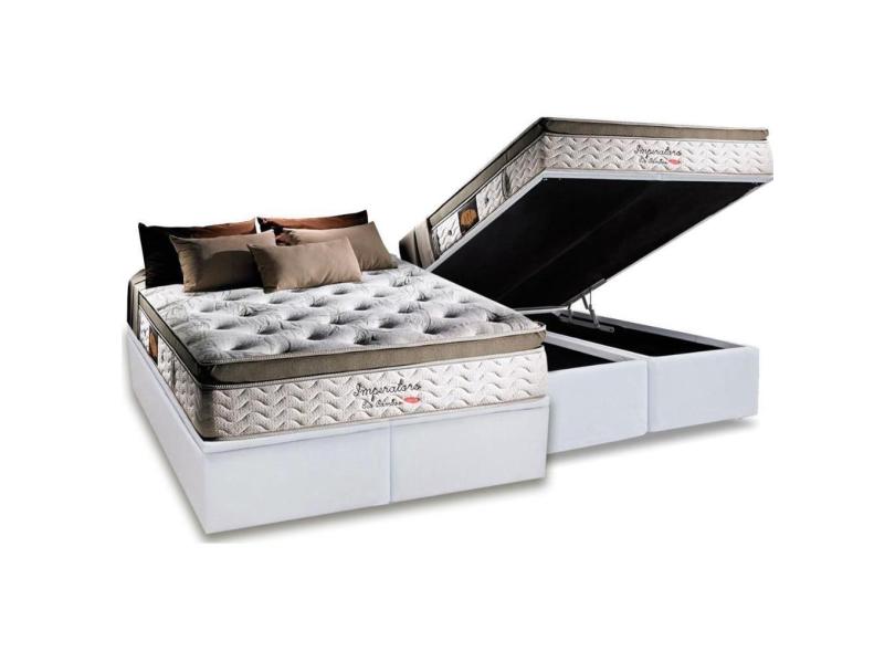 Cama Box Baú Queen: Colchão Molas Ensacadas Herval Imperatore Eco Bamboo + Base White(158X198)