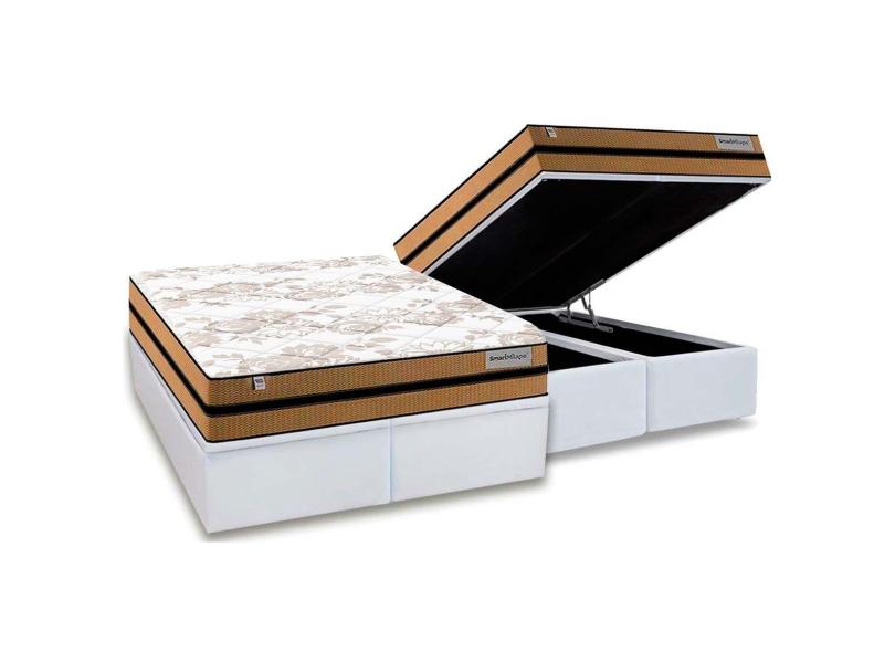 Cama Box Baú Queen: Colchão Molas Ensacadas Plumatex Masterpocket Milano + Base Crc Courano White(158X198)