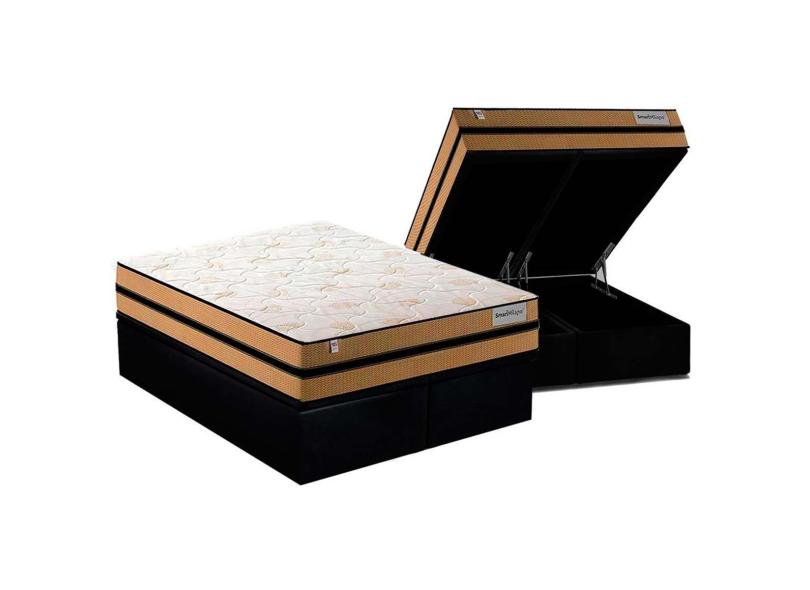 Cama Box Baú Queen: Colchão Molas Ensacadas Plumatex Masterpocket Smart Milano + Base Crc Suede Black(158X198)