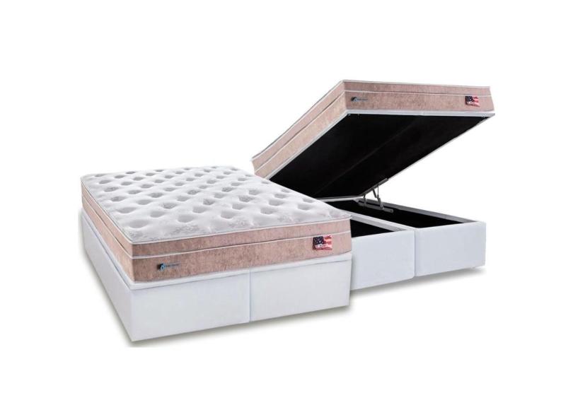 Cama Box Baú Queen: Colchão Molas Ensacadas Sealy Masterpocket Miami + Base White(158X198)