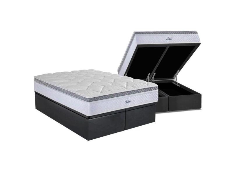Cama Box Baú Queen: Colchão Molas Herval Masterpocket Ensacadas Toledo + Base Gray(158X198)