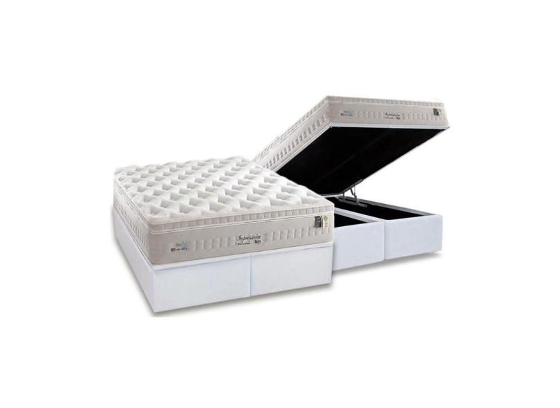 Cama Box Baú Queen: Colchão Molas Masterpocket Ensacadas Anjos Impressione + Base White(158X198)