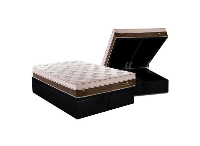 Cama Box Baú Queen: Colchão Molas Masterpocket Ensacadas Plumatex Personalle + Base Black(158X198)