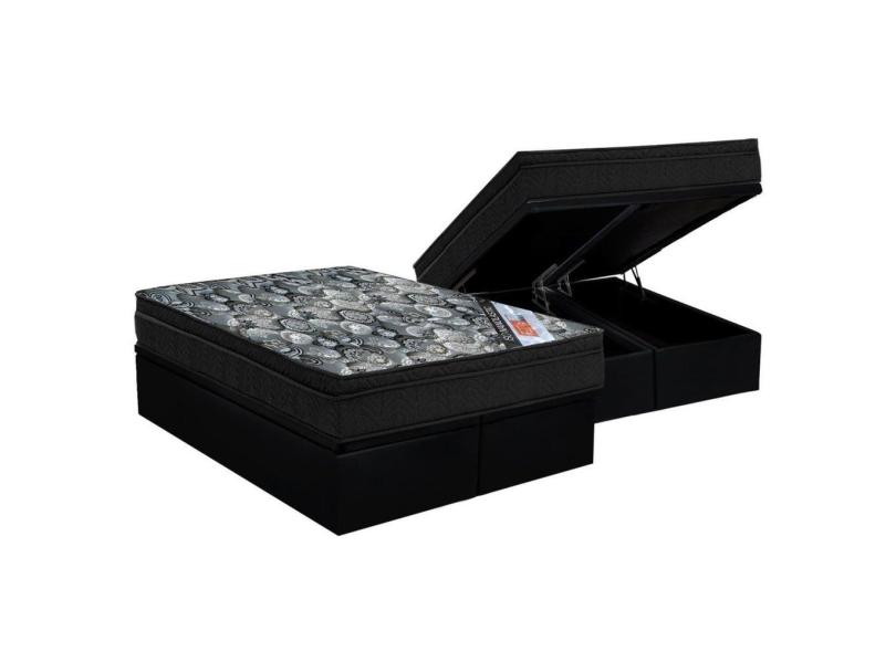 Cama Box Baú Queen: Colchão Molas Ortobom Nanolastic Fort Tech iso + Base crc Suede Black(158x198)