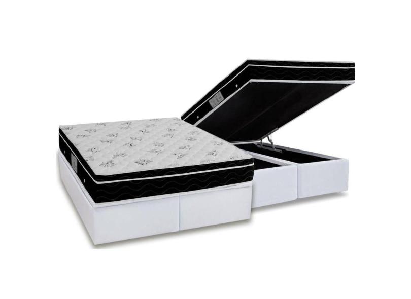 Cama Box Baú Queen: Colchão Molas Ortobom Nanolastic Physical + Base CRC Courano White(158x198)