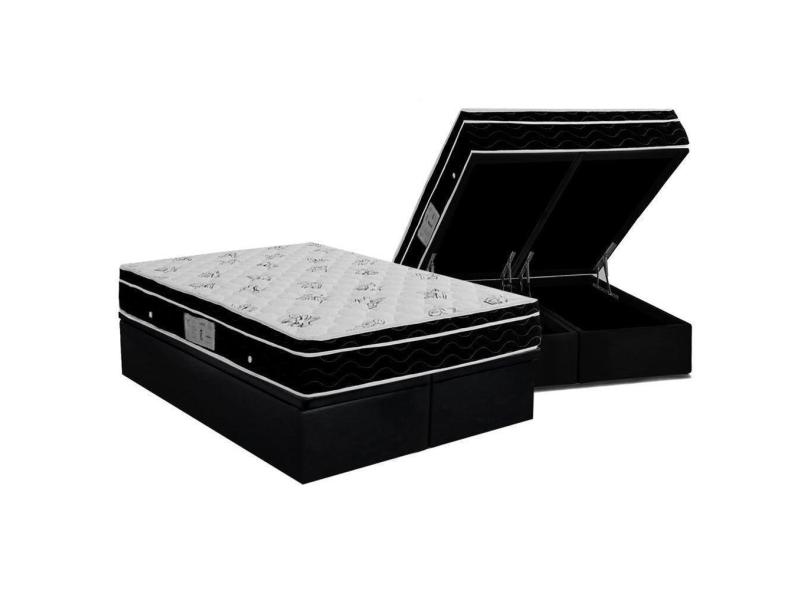 Cama Box Baú Queen: Colchão Molas Ortobom Nanolastic Physical + Base Crc Suede Black(158X198)