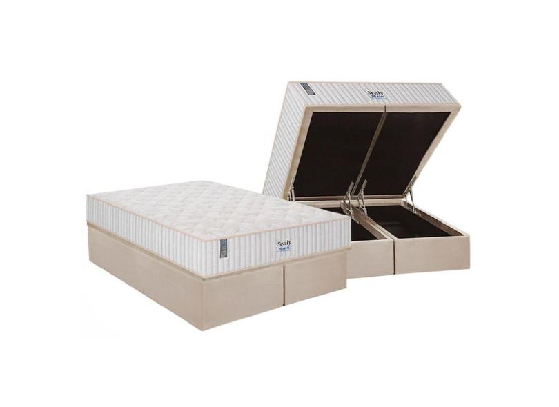 Cama Box Baú Queen: Colchão Molas Sealy MasterPocket Ensacadas Miami + Base CRC Suede Clean(158x198)
