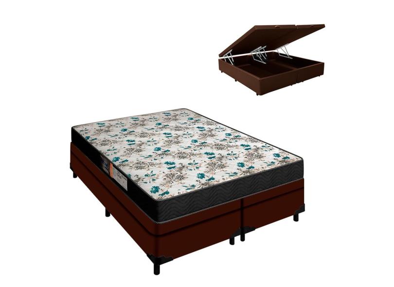Cama Box Baú Queen Marrom Colchão 20 de Altura Veneza Portobel