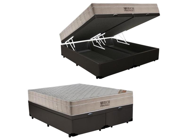 Cama Box Baú Queen Sintético Bipartido + Colchão Ortobom Airtech Molas Ensacadas 65x158x198 Marrom
