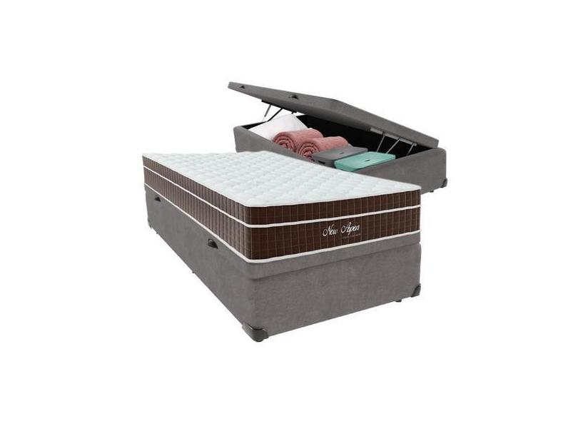 Cama + Box Baú Solteirão Colchão New Aspen Molas Ensacadas Comfort Pri