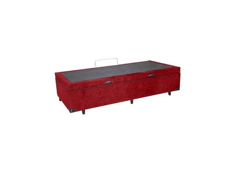 Cama Box Baú Solteirão King Blindado Suede Vermelho 203X96x44 Cm - Imp