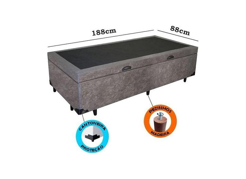 Cama Box Baú Solteirão Suede Cinza Com Pistões A Gás 0.96X2.03 - Real