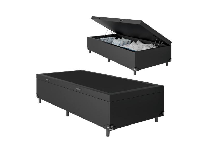 Cama Box Baú Solteiro - 44x88x188cm - e-Shop Casa - Couro Preto