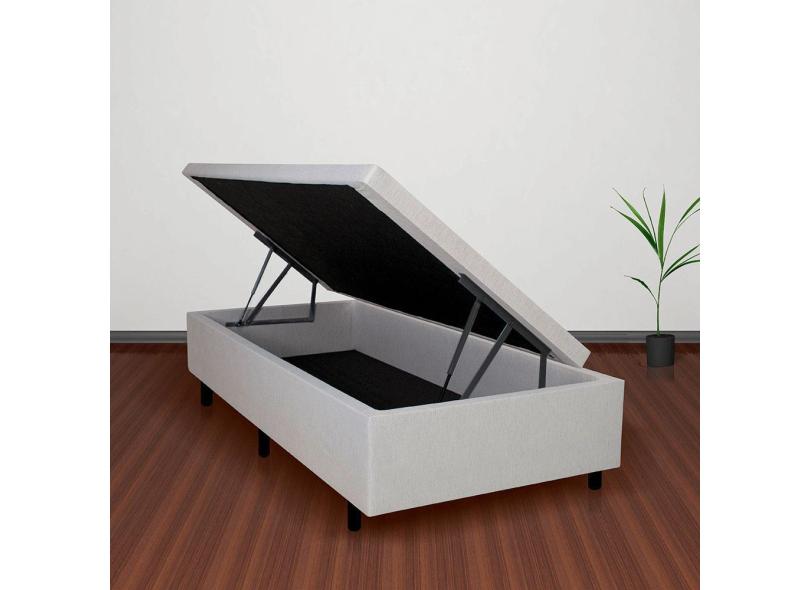 Cama Box Baú Solteiro 88X188x42 Cm Courino Linho Marrom Com Pistão A Gás