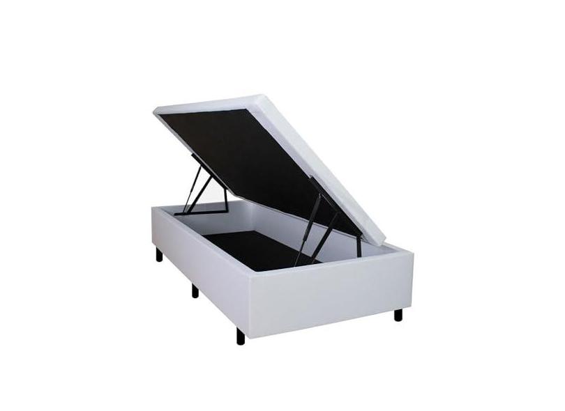 O menor preço encontrado no Brasil para Cama Box Baú Solteiro 88x188x42cm Branco com Pistão a Gás Branco atualmente é R$ 717,76.