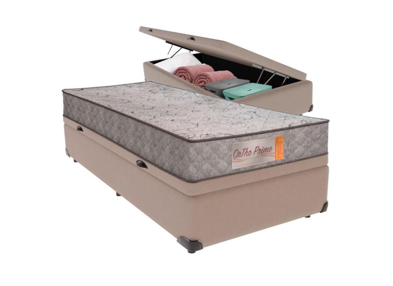Cama + Box Baú Solteiro Bege Orthoprime Comfort Ortopédico 78x188
