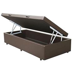 O menor preço encontrado no Brasil para Cama Box Baú Solteiro Blindado Sintético Marrom com pistão a gas atualmente é R$ 500,00.