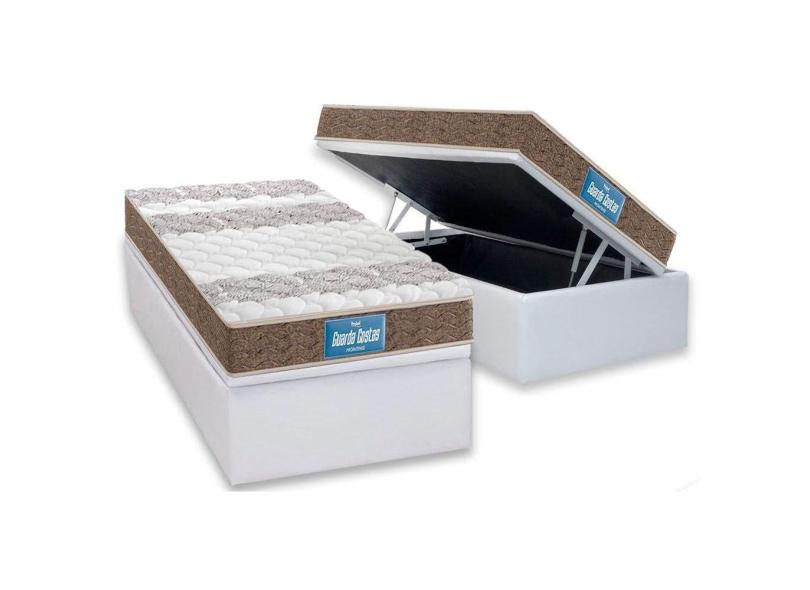 Cama Box Baú Solteiro: Colchão Anatômico Probel D33 Guarda Costas PróIntense Plus + Base CRC Courano White (88x188)