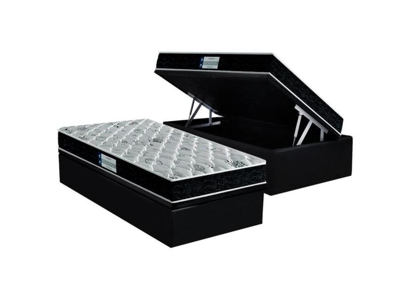 Cama Box Baú Solteiro: Colchão Anatômico Probel D45/Ep Prodormir Advanced Tech2000 Double Face + Base Crc Suede Black(88X188)