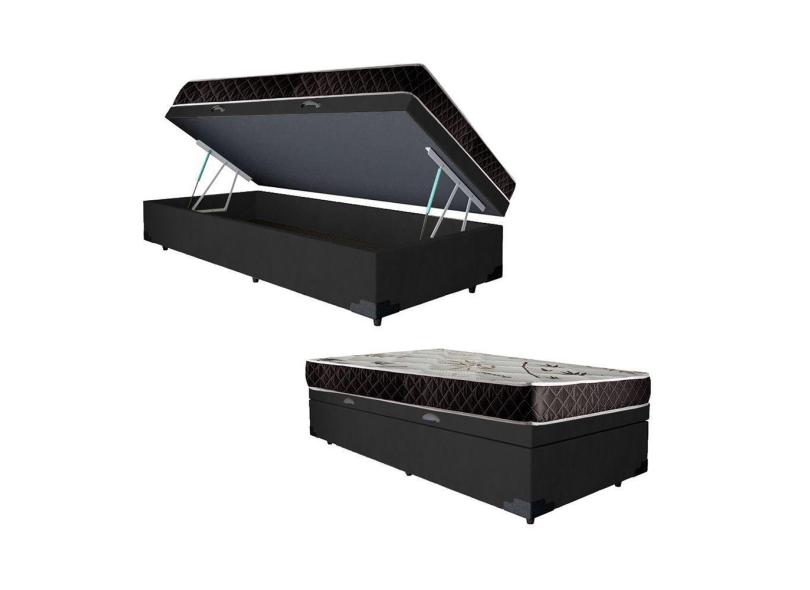 Cama Box Baú Solteiro Colchão Aylla Espuma D33 Acolchões + Box Suede 63x88x188