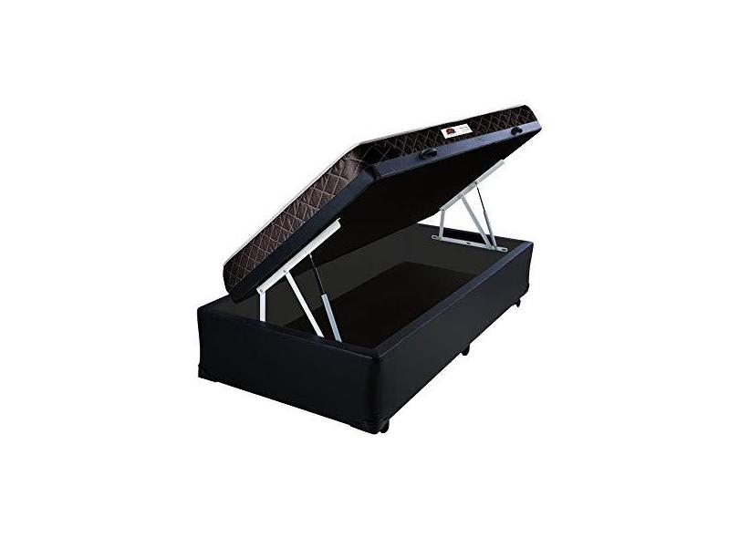 Cama Box Baú Solteiro Colchão Classic Mola Ensacada + Box Sintético Preto Serra Negra 67x88x188