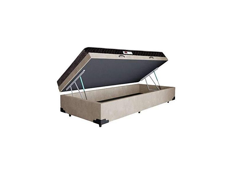 Cama Box Baú Solteiro Colchão Classic Mola Ensacada + Box Suede Bege Serra Negra 67x88x188