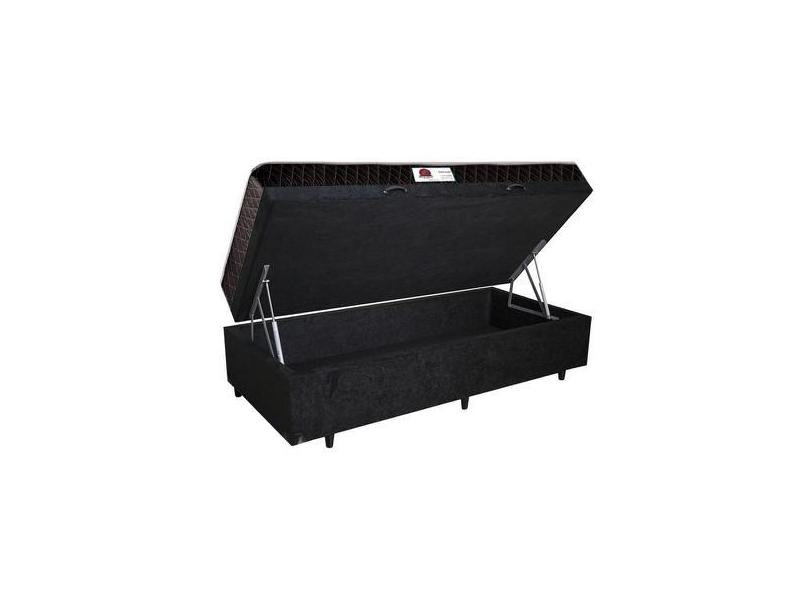 Cama Box Baú Solteiro Colchão Classic Mola Ensacada + Box Suede Preto