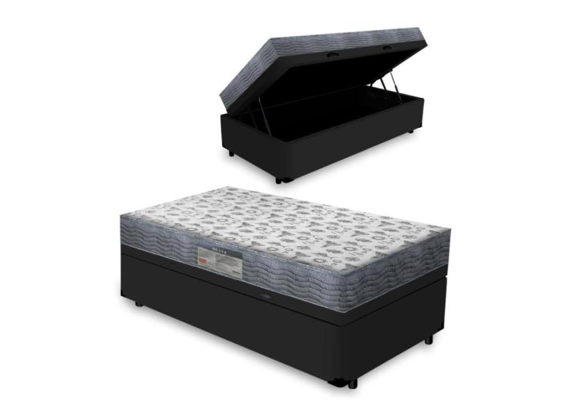 Cama Box Baú Solteiro + Colchão D33 Iso 100 Ortobom 96cm Preto - Suporta até 100Kg Por Pessoa