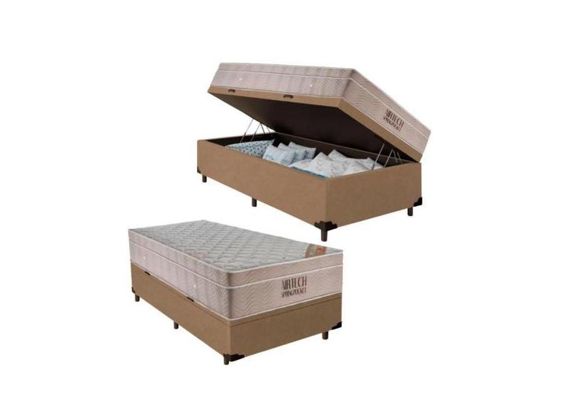 Cama Box Baú Solteiro + Colchão De Molas Ensacadas Ortobom Airtech Beg