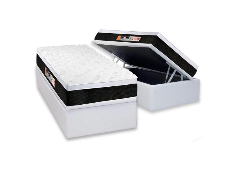 Cama Box Baú Solteiro: Colchão Espuma Castor D45 Black e White Air Euro Pillow + Base crc Courano White(88x188)
