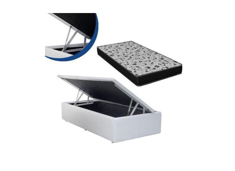 O menor preço encontrado no Brasil para Cama Box Baú Solteiro Colchão Espuma D33 Bordado + Box Sintético Branc atualmente é R$ 779,90.