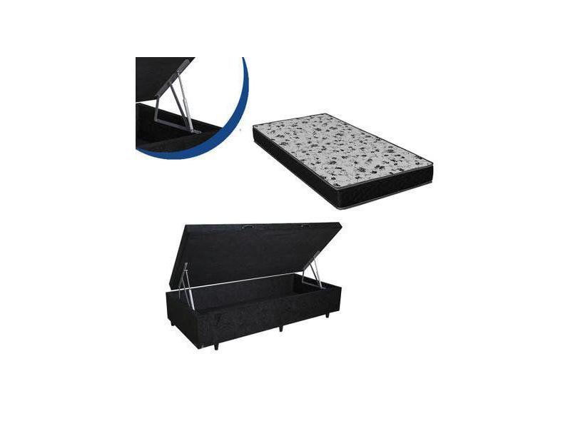 Cama Box Baú Solteiro Colchão Espuma D33 Bordado + Box Suede Cinza 59X