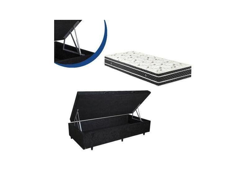 Cama Box Baú Solteiro Colchão Espuma D33 Bordado + Box Suede Preto 53X