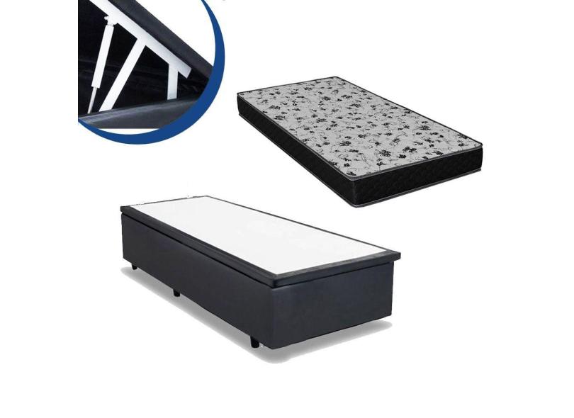 O menor preço encontrado no Brasil para Cama Box Baú Solteiro Colchão Espuma D33 + Box Cinza Sintético 53x78x188 atualmente é R$ 813,04.