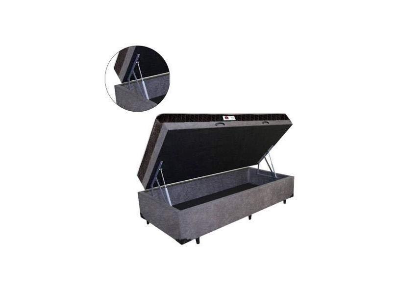 Cama Box Baú Solteiro Colchão Espuma D33 + Box Suede Cinza Serra Negra 59x88x188