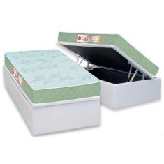 Cama Box Baú Solteiro: Colchão Espuma D33 Castor Sleep Max Duplo + Base CRC Courano White(88x188)