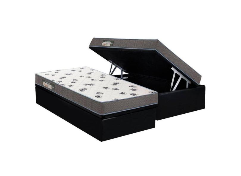 Cama Box Baú Solteiro: Colchão Espuma D33 Ortobom Light Saúde + Base CRC Courano Black(88x188)