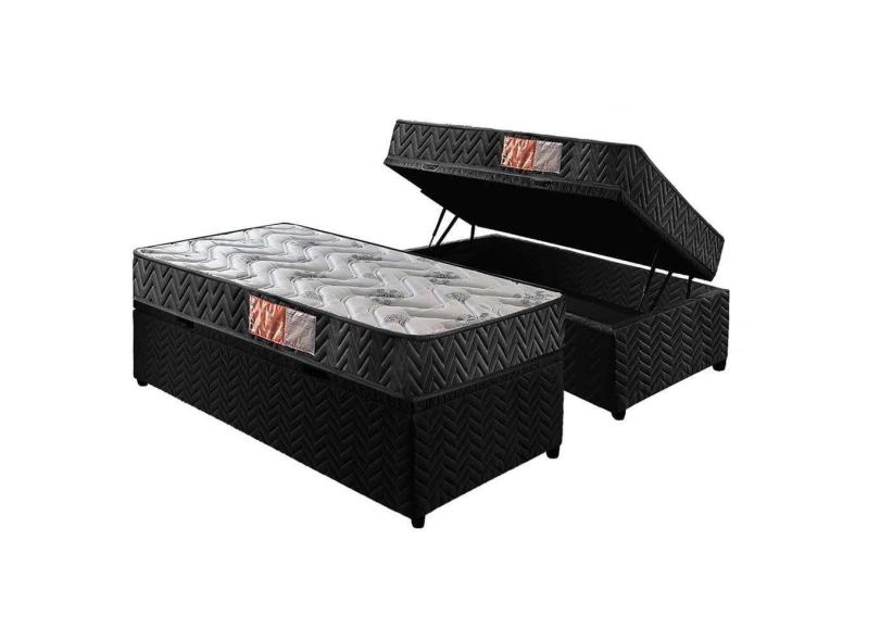 Cama Box Baú Solteiro: Colchão Espuma D33 Paropas Pasquale + Base CRC Suede Black(88x188)