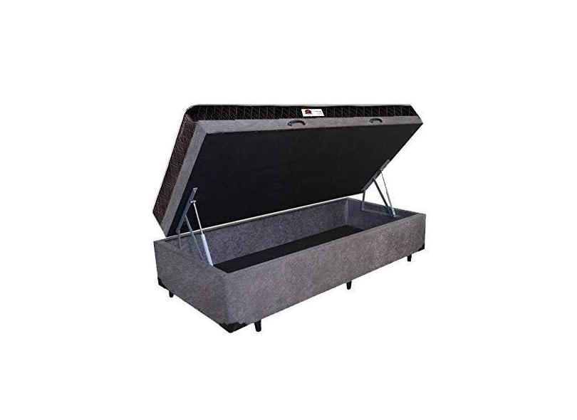 Cama Box Baú Solteiro Colchão Espuma D45 Bordado + Box Suede Cinza Serra Negra 62x88x188