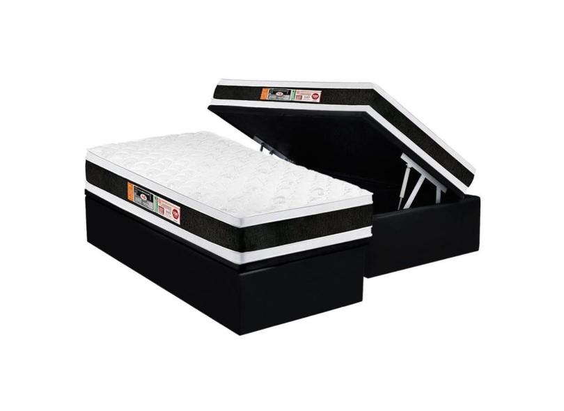 Cama Box Baú Solteiro: Colchão Espuma D45 Castor Black e White Air Double Face + Base CRC Suede Black(88x188)