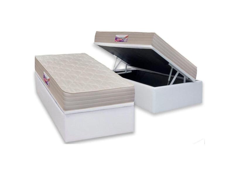 Cama Box Baú Solteiro: Colchão Espuma D45 Herval Top + Base CRC Courano Branco(88x188)
