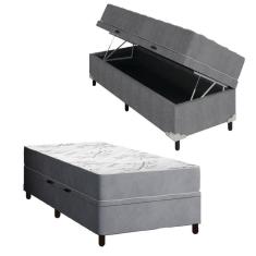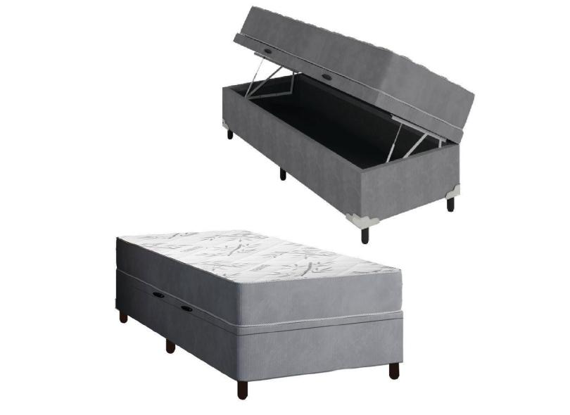 Cama Box Baú Solteiro Colchão Espuma Egito 88x188x60cm Cinza / Branco Portobel - Suporta Até 100kg Por Pessoa Cinza