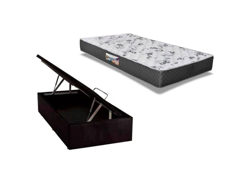 Cama Box Baú Solteiro: Colchão Espuma Herval D28 / AG65 Ortopedic Black + Base CRC Suede Black(88x188)