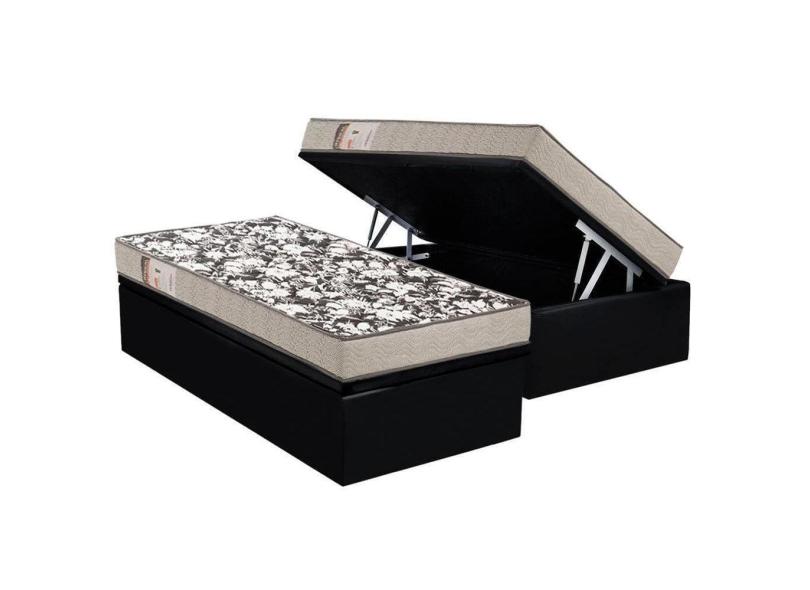 Cama Box Baú Solteiro: Colchão Espuma Ortobom D26 Physical Ultra Resistente + Base CRC Courano Black(88x188)