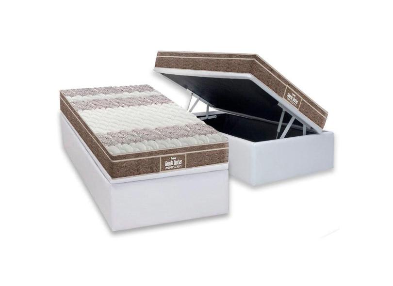 Cama Box Baú Solteiro: Colchão Espuma Probel D33 / EP Guarda Costas PróIntense Plus + Base CRC Courano White(88x188)