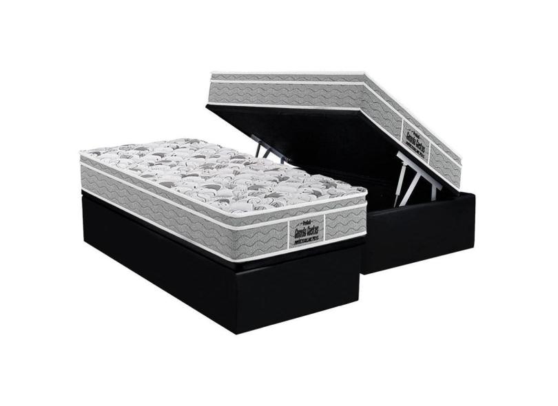 Cama Box Baú Solteiro: Colchão Espuma Probel D45 / ep Guarda Costas PróExtreme Plus + Base crc Suede Black(88x188)